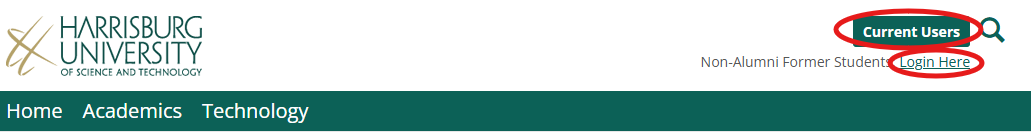 Alumni users are students who have successfully completed a degree at Harrisburg University. If you are an alumnus, please use the green "Current Users" button. You will then enter your email address and password at the Microsoft sign-in page and be redirected back to MyHU. If login issues occur, try recovering your password.
